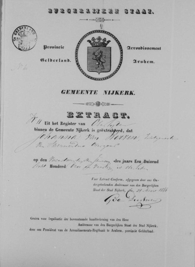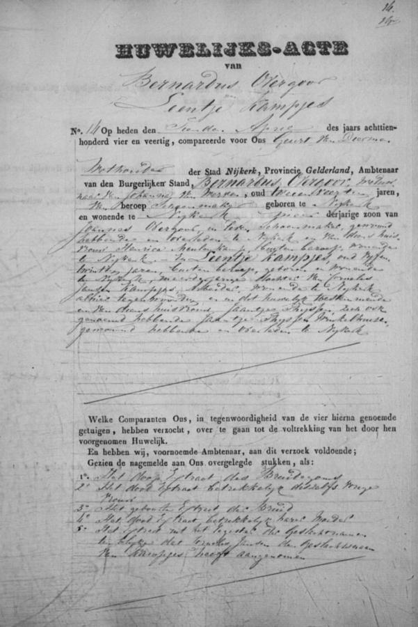 | bruidegom: | Bernardus Overgoor Schoenmaker te Nijkerk[Ge] op 10 april 1844 | 10 april 1844 | |