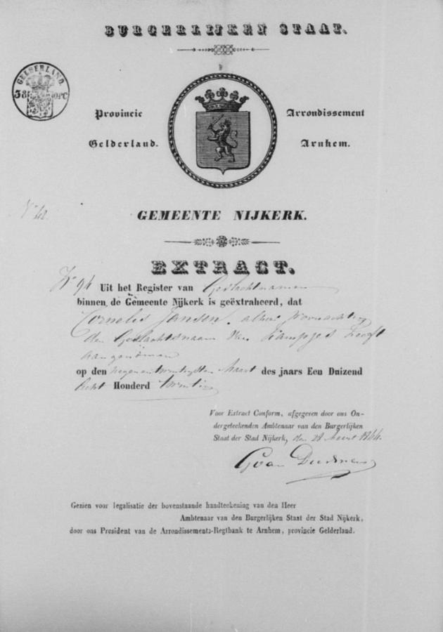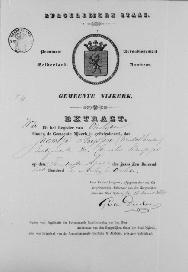 | vader bruid: | Cornelis Jansen Kampjes Arbeider te Nijkerk[Ge] op 10 april 1844 | 10 april 1844 | |