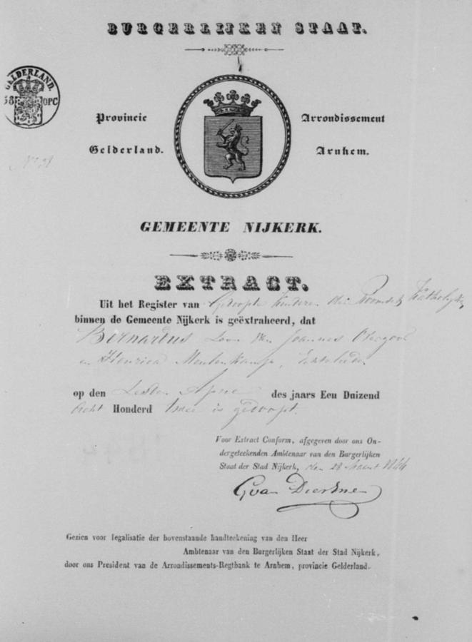 | echtpaar: | Bernardus Overgoor en Leentje Kampjes | 10 april 1844 | |