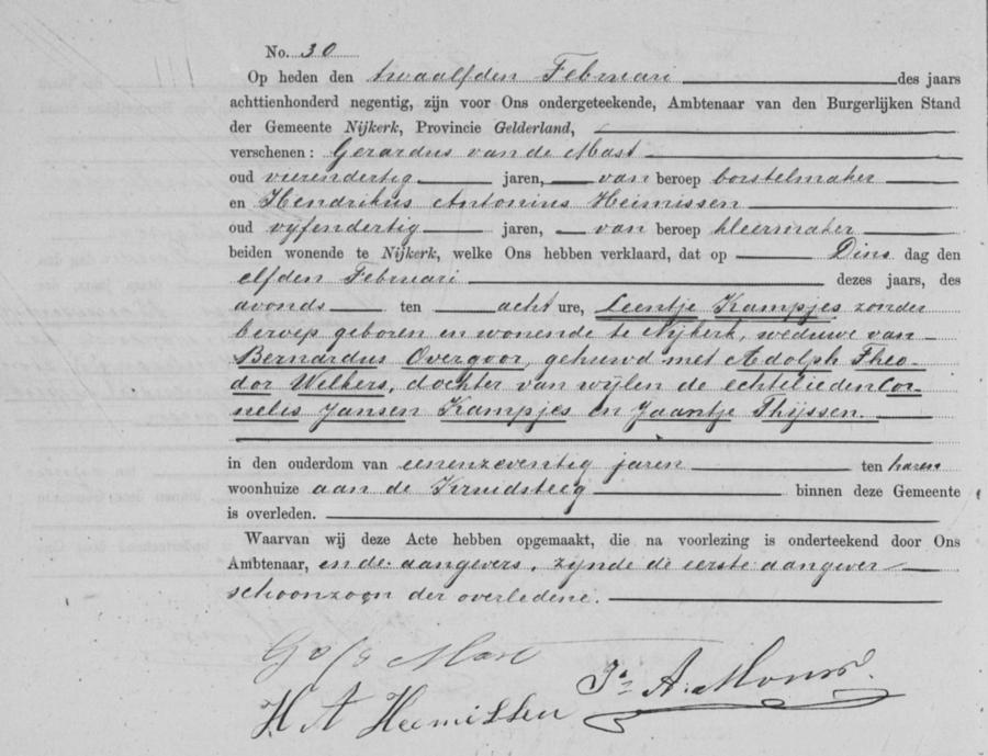 | overledene: | Leentje Kampjes | 11 februari 1890 | |