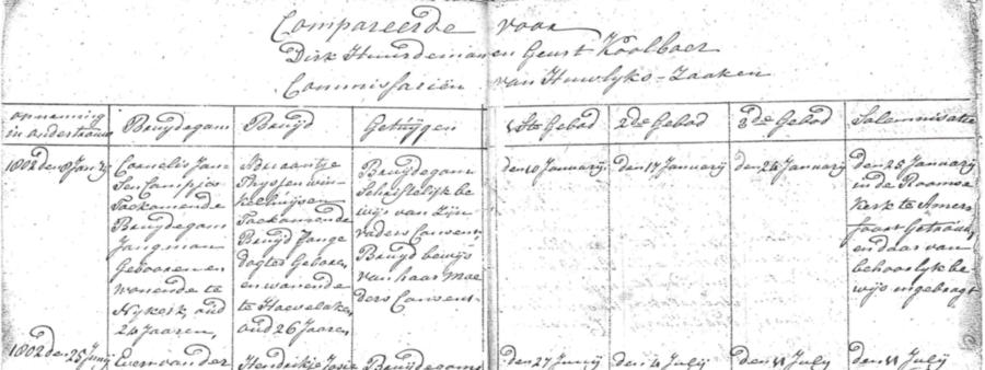 | bruidegom: | Cornelis Jansen Kampjes | 8 januari 1802 | geschr. als Cornelis Jansen Campjes |