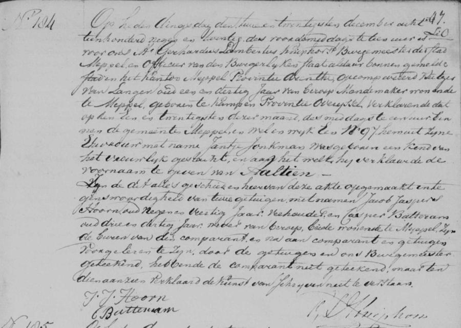 | kind: | Aaltien van Langen geboren Huis wijk 1 nummer 97 te Meppel op 21 december 1829 | 21 december 1829 | |