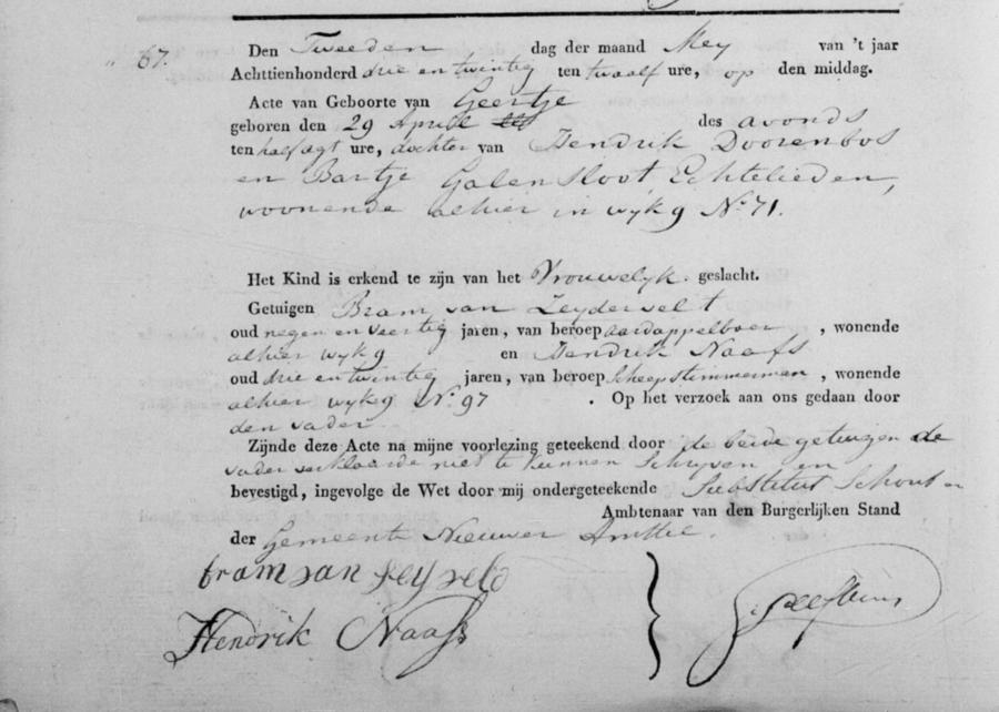 Bron: BS Geboorte Nieuwer-Amstel, akte 67, 02-05-1823