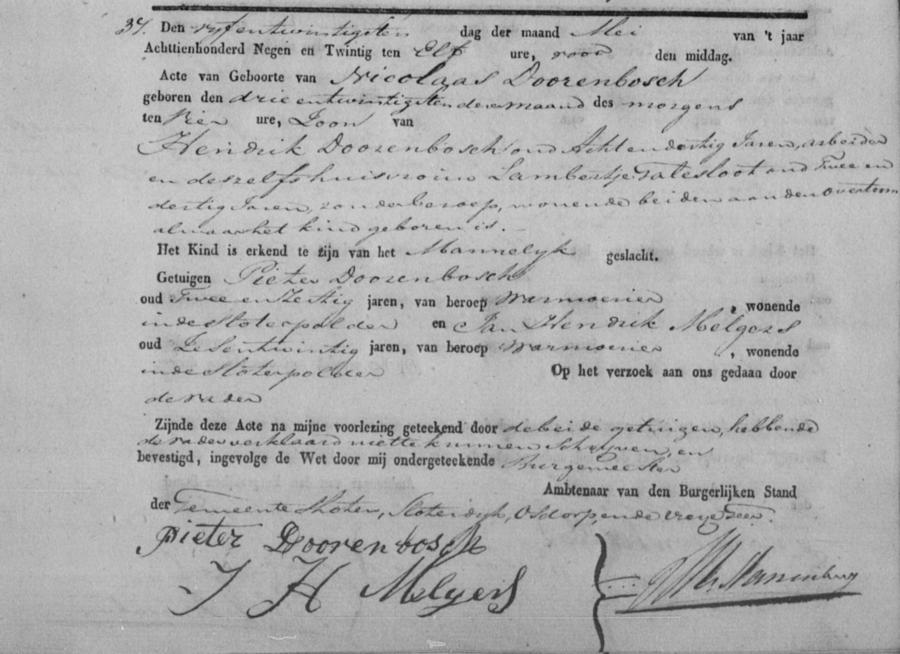| vader: | Henricus Dorebos | 23 mei 1829 | geschr. als Hendrik Doorenbosch |