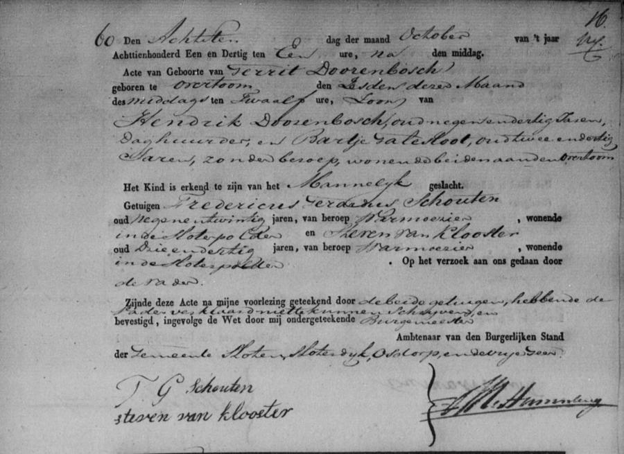 | kind: | Gerrit Doorenbosch | 6 oktober 1831 | |