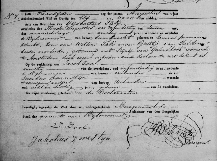 | overledene: | Gijsbert Tak | 10 augustus 1835 | geschr. als Gijsbertus Tak |