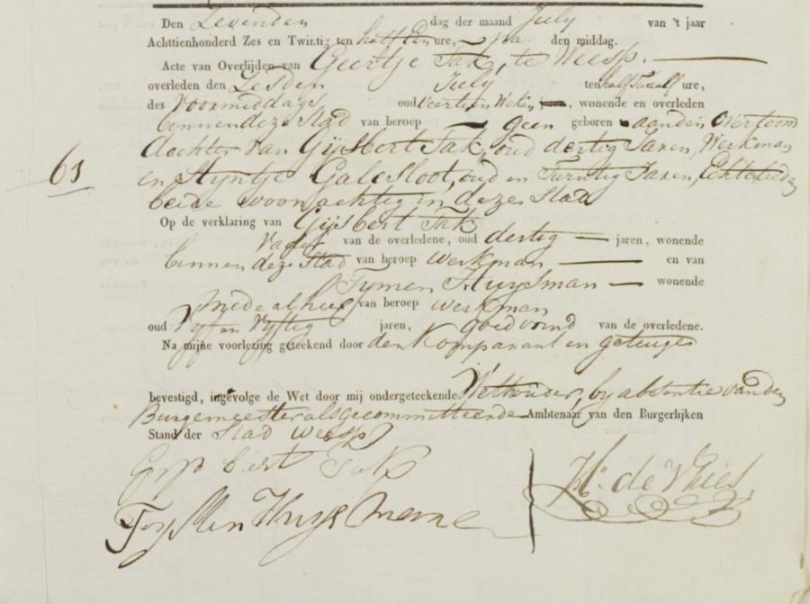 Bron: BS Overlijden Weesp, akte 61, 07-07-1826