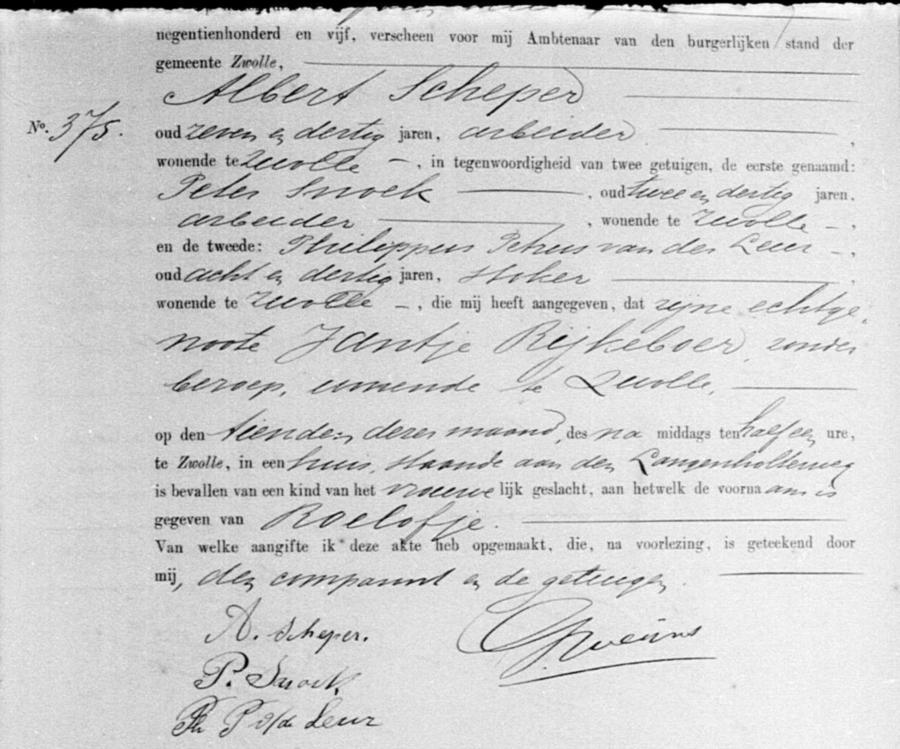 Bron: BS Geboorte Zwolle, akte 375, 11-05-1905
