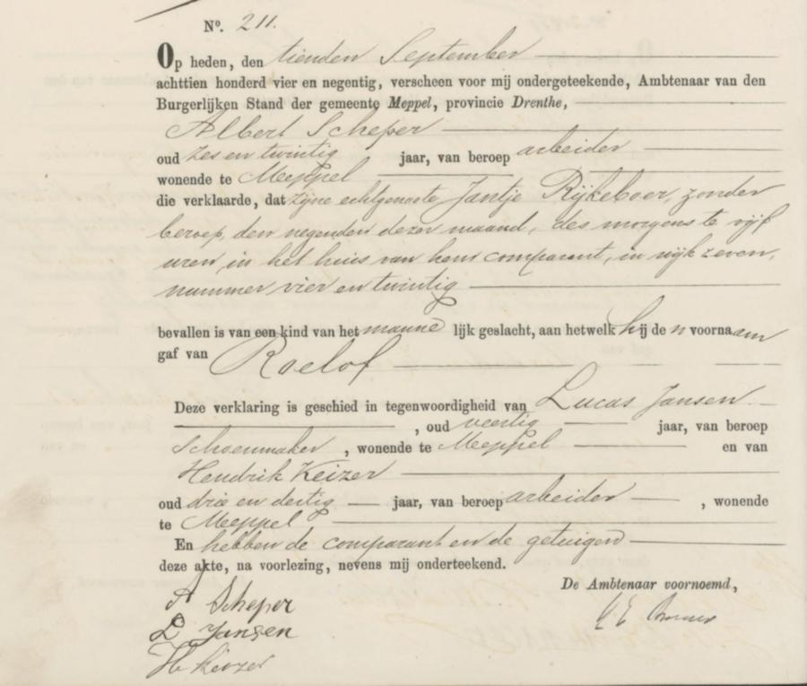 | vader: | Albert Scheper Arbeider te Meppel[Dr] op 9 september 1894 | 9 september 1894 | |