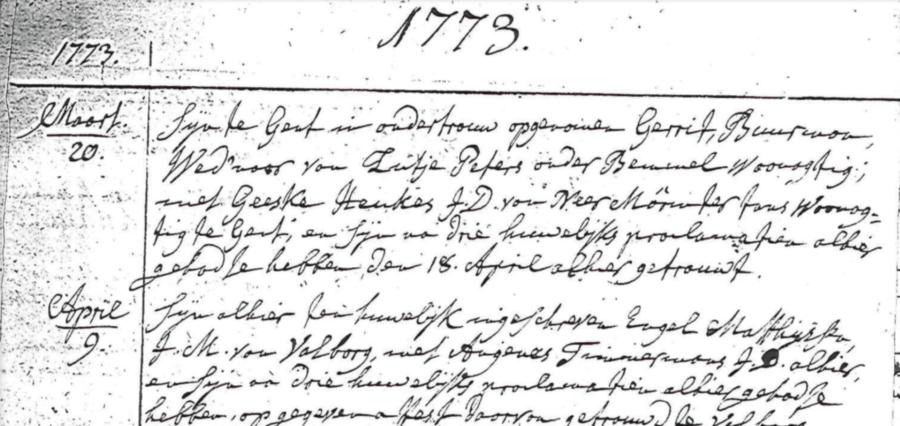 | echtpaar: | Gerhardus Beurmans en Gijsberta Houwkes | 20 maart 1773 | |