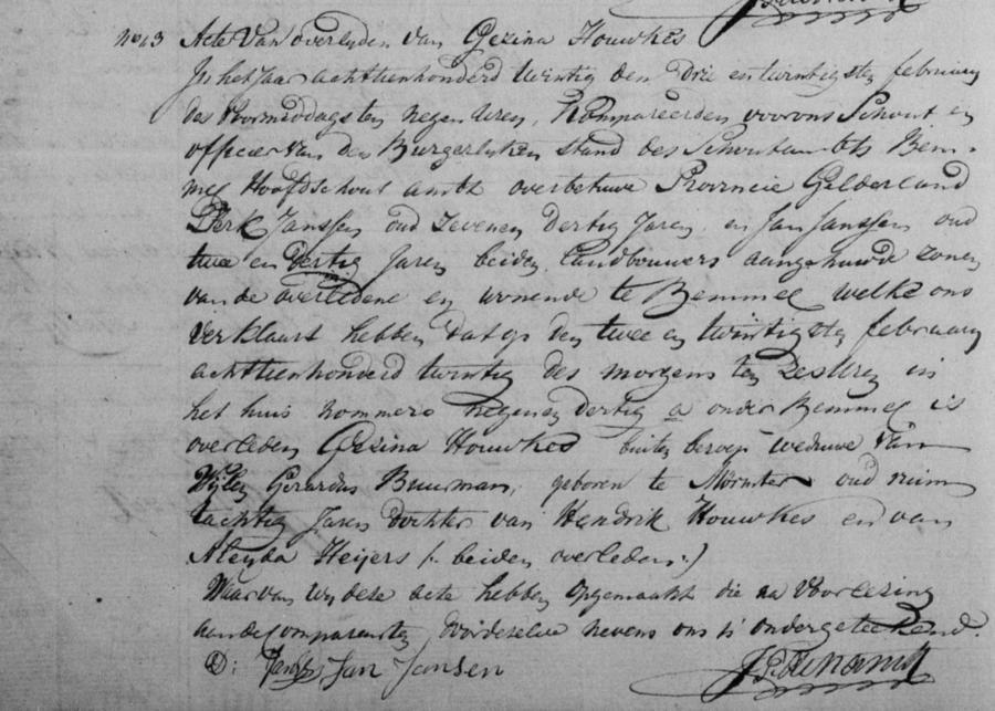 | overledene: | Gijsberta Houwkes | 22 februari 1820 | geschr. als Gezina Houwkes |