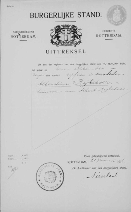 | vader bruidegom: | Albert Rijkeboer Huidenzouter te Rotterdam[Zh] op 20 december 1916 | 26 februari 1916 | |