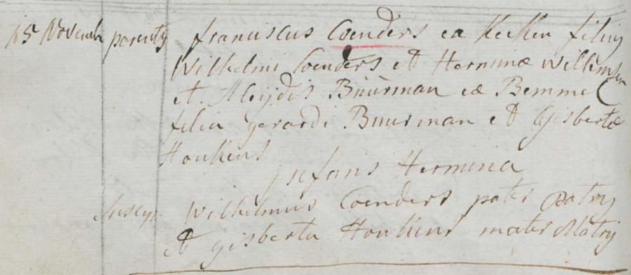 | opa vaderszijde: | Wilhelmus Conders | 15 november 1807 | geschr. als Wilhelmus Coenders |
