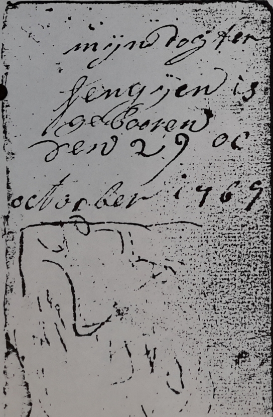 Mijn dogter Fenken (?) is gebooren den 27 september 1766