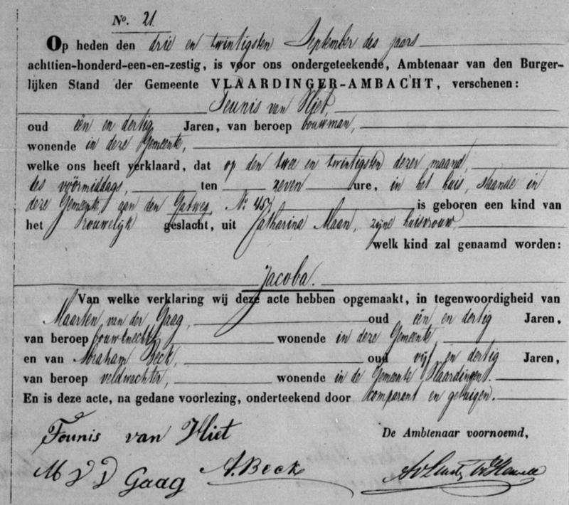 Bron: BS Geboorte Jacoba van Vliet