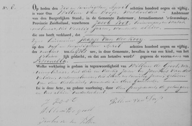 Bron: BS Geboorte Petronella Poot
