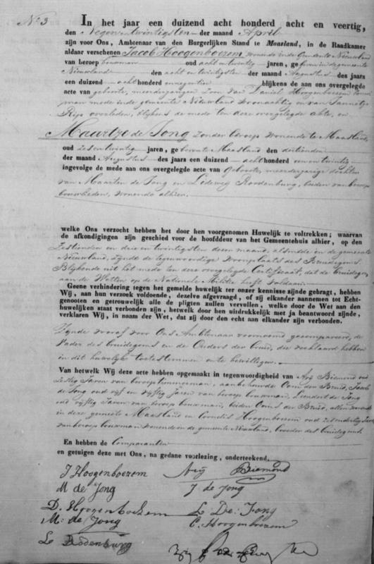 Bron: BS Huwelijk Jacob Hoogenboezem en Maartje de Jong