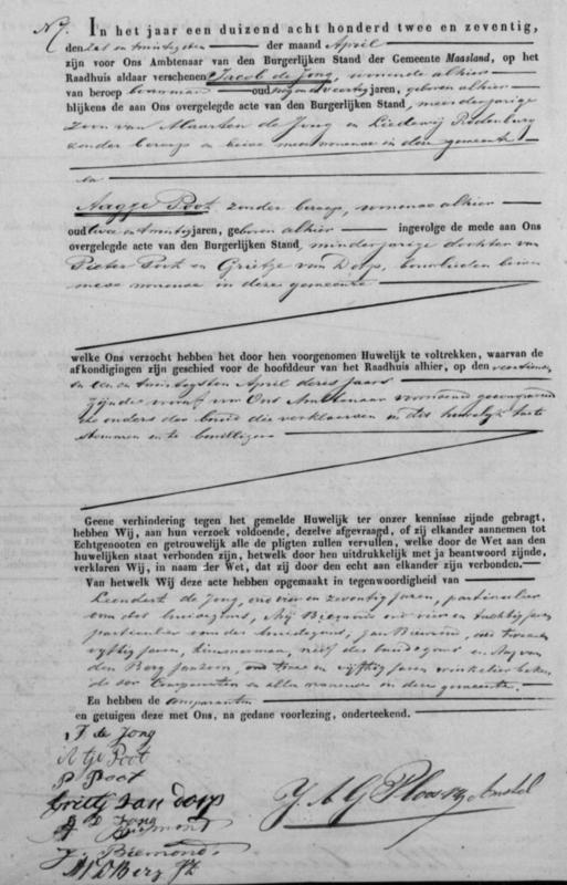 Bron: BS Huwelijk Jacob de Jong en Aagje Poot