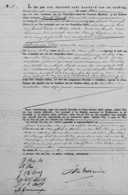 Bron: BS Huwelijk Jacob Rense en Adriana Tas