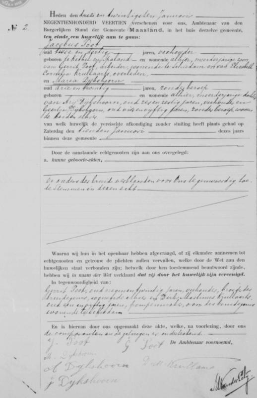 Bron: BS Huwelijk Jacobus Poot en Maria Dijkshoorn