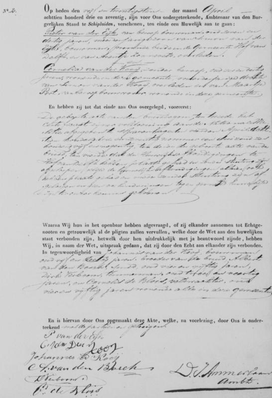 Bron: BS Huwelijk Pieter van der Eijk en Cornelia van der Kooij
