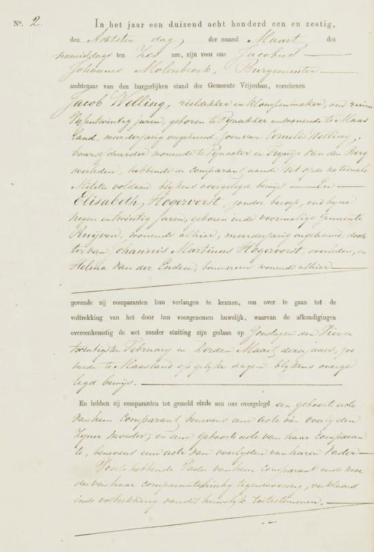 Bron: BS Huwelijk Jacob Welling en Elizabeth Hoogervorst