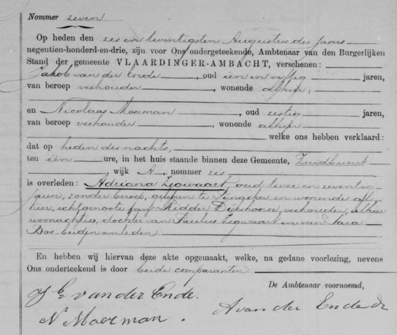 Bron: BS Overlijden Adriana Zegwaart