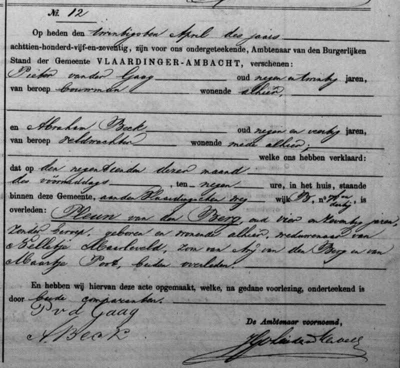 Bron: BS Overlijden Pleun van den Berg