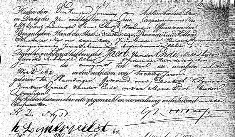 Bron: BS Overlijden Jacob van der Ende
