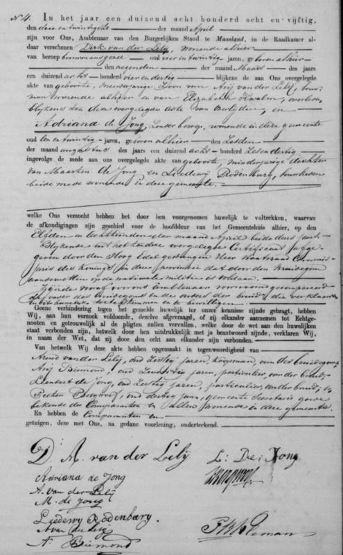 Bron: BS Huwelijk Dirk van der Lelij en Adriana de Jong