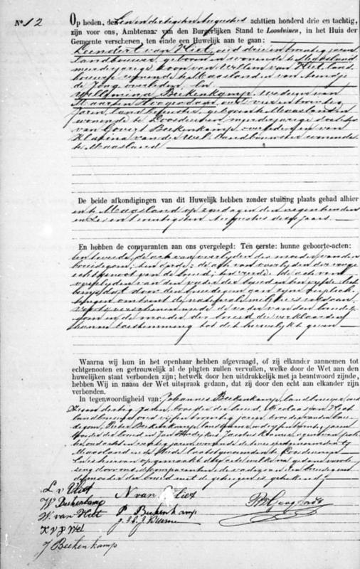Bron: BS Huwelijk Leendert van Vliet en Willemina Beekenkamp