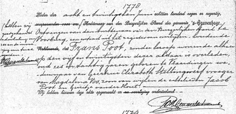 Bron: BS Overlijden Frans Poot