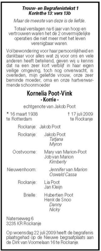 Bron: Rouwadvertentie Kornelia Vink