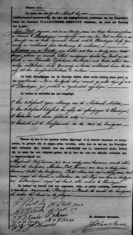 Bron: BS Huwelijk Jan Poot en Maria vd Ende