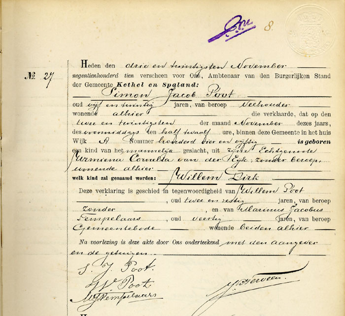 Bron: BS Geboorte Willem Dirk Poot