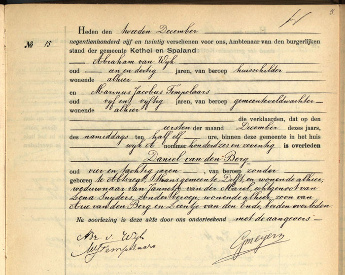 Bron: BS Overlijden Daniël van den Berg