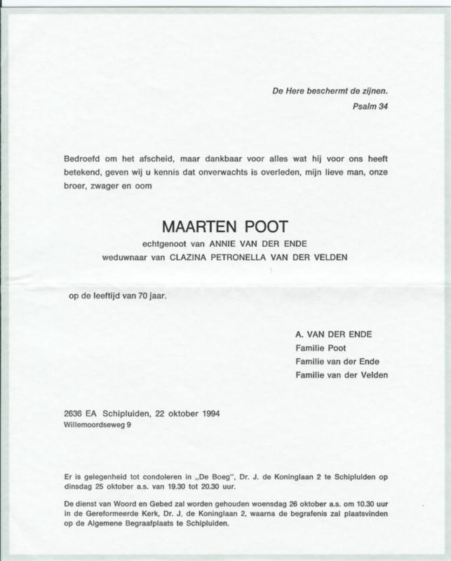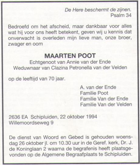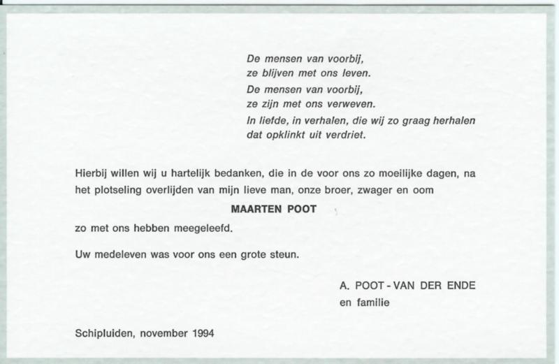 Bron: Rouwkaart Maarten Poot