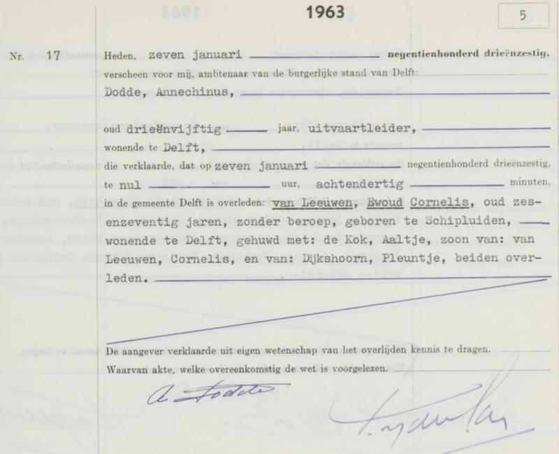 Bron: BS Overlijden Ewoud Cornelis van Leeuwen