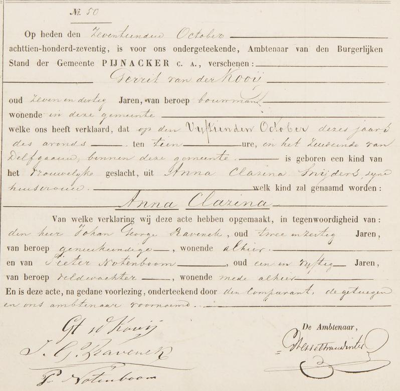 Bron: BS Geboorte Anna Clazina van der Kooij