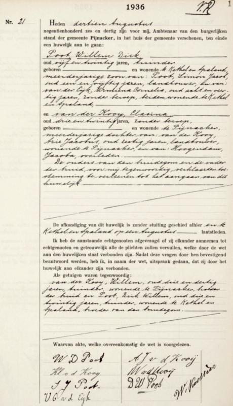 Bron: BS Huwelijk Willem Dirk Poot en Clasina van der Kooij