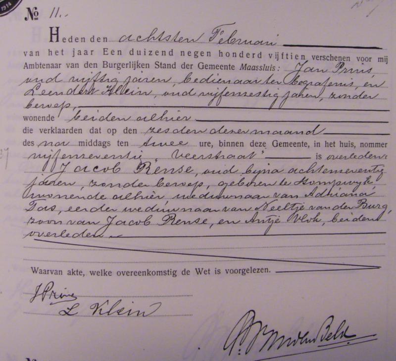 Bron: BS Overlijden Jacob Rense