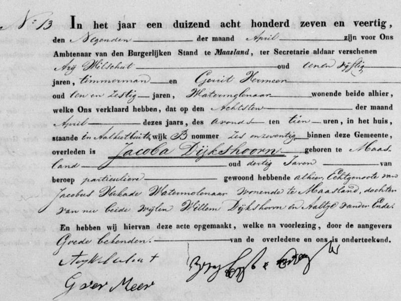 Bron: BS Overlijden Jacoba Dijkshoorn