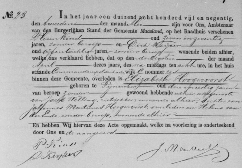 Bron: BS Overlijden Elizabeth Hoogervorst