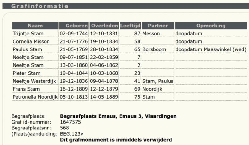 Bron: Geruimd graf van familie Stam