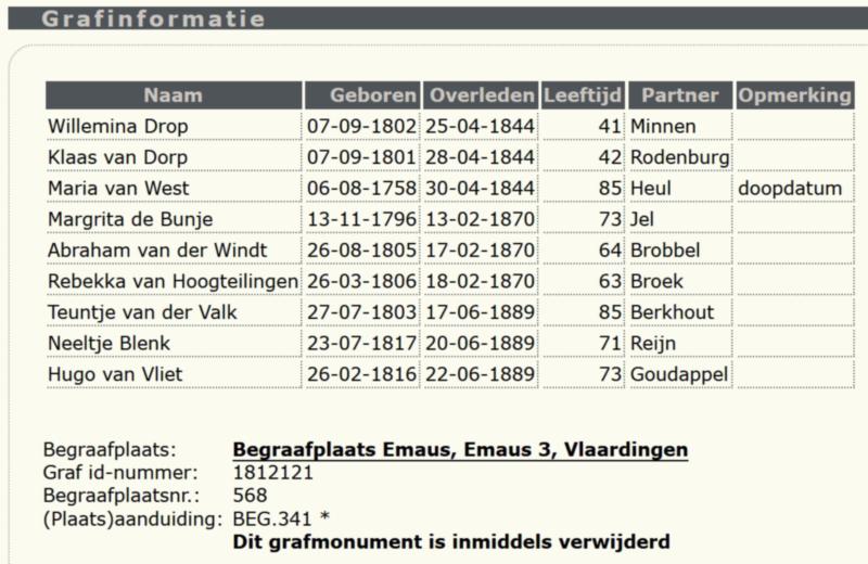 Bron: Geruimd graf van Klaas v Dorp en Maria v West