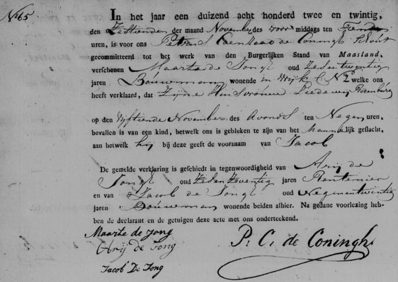 Bron: BS Geboorte Jacob de Jong