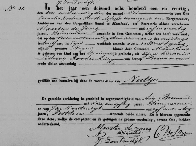 Bron: BS Geboorte Neeltje de Jong