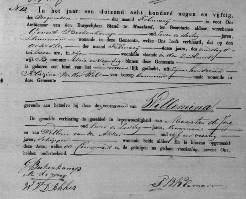Bron: BS Geboorte Willemina Beekenkamp