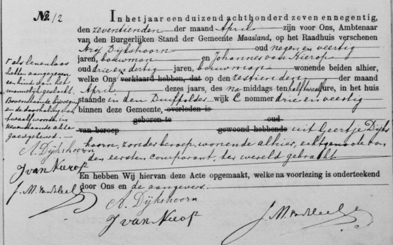 Bron: BS Doodgeboren zoon Dijkshoorn