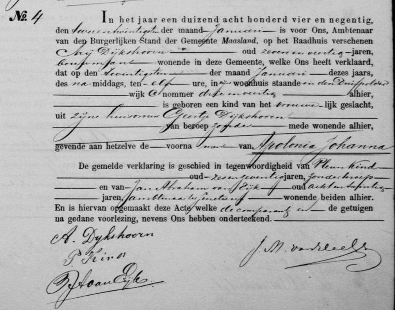 Bron: BS Geboorte Apolonia Johanna Dijkshoorn